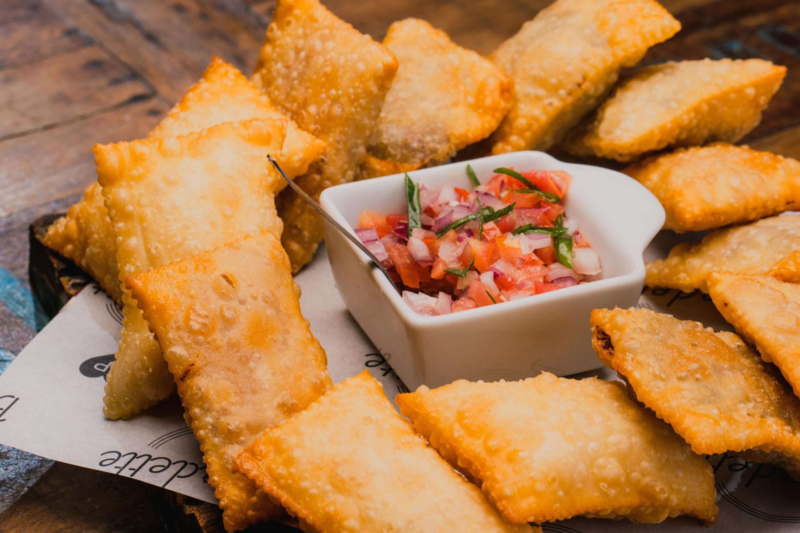 Mix de Pastéis (12 unidades). 4 mini pastéis de carne, 4 mini pastéis de queijo (receita exclusiva do chef), 4 mini pastéis de calabresa, acompanham vinagrete.