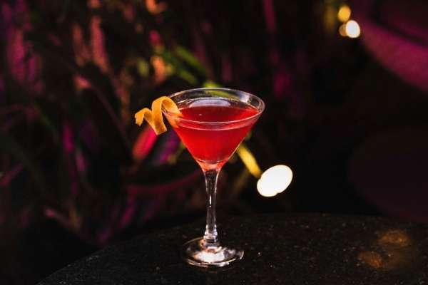 Vodka, licor de laranja, limão e suco de cranberry.