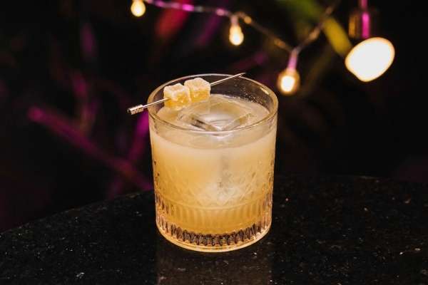 Vodka, Xarope de açúcar, Suco de Limão e Espuma de Gengibre.