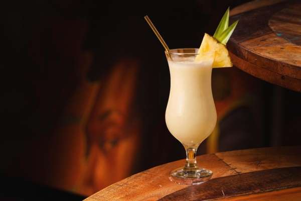 Rum, abacaxi, leite condensado e leite de coco.