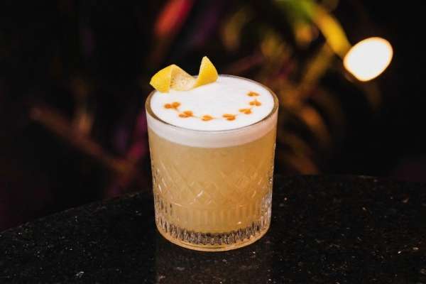 Whisky, mix de limão, xarope de açúcar, albumina e angostura.