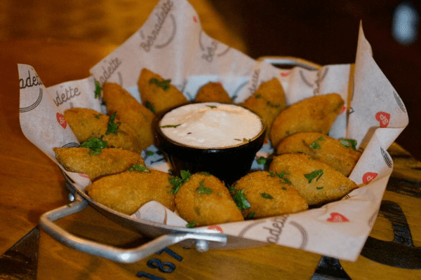 7 coxinhas empanadas (apimentadas ou não), servidas com molho blue cheese.